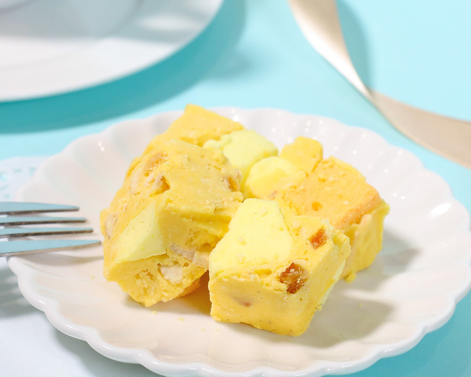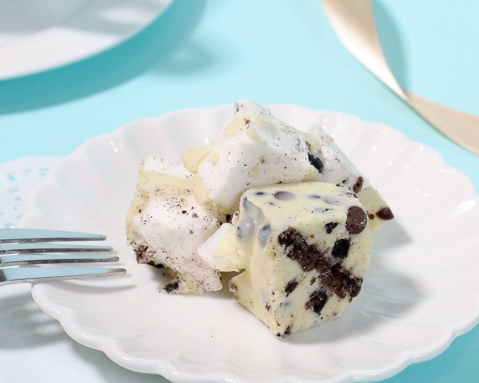 ホワイトデー限定で、2種類のロッキーロードが登場です。お返しの定番であるクッキーから連想した「クッキー&クリームロッキーロード」は、ほんのりバニラなチョコレートに、ミルクマシュマロとココアビスケットをたっぷり混ぜ込んだミルキーな仕上がりです。「トロピカルロッキーロード」は、果汁入りのパイン&パッションマンゴーマシュマロを、酸味のきいたマンゴーチョコレートに加えました。隠し味にオレンジピールを少し入れています。