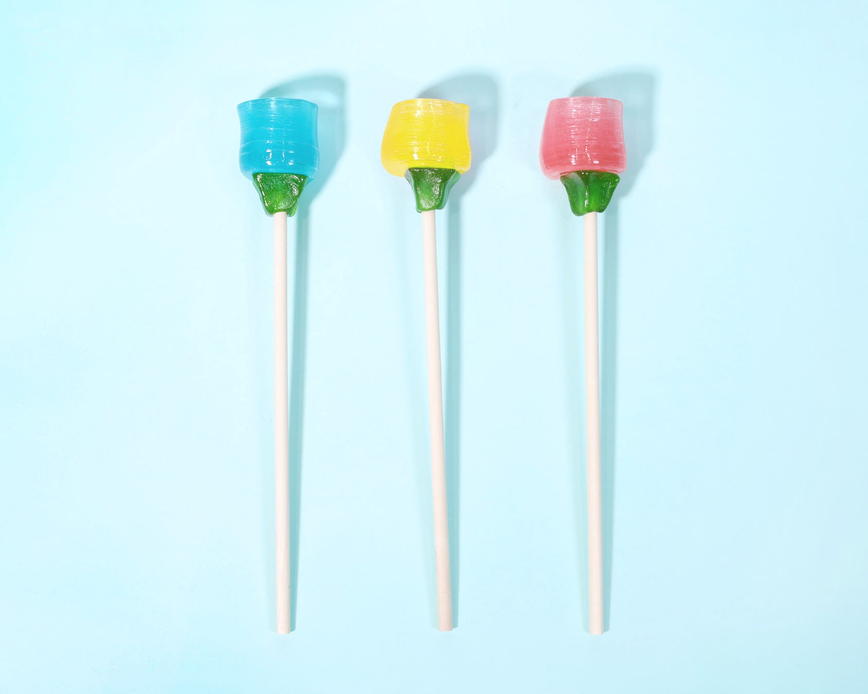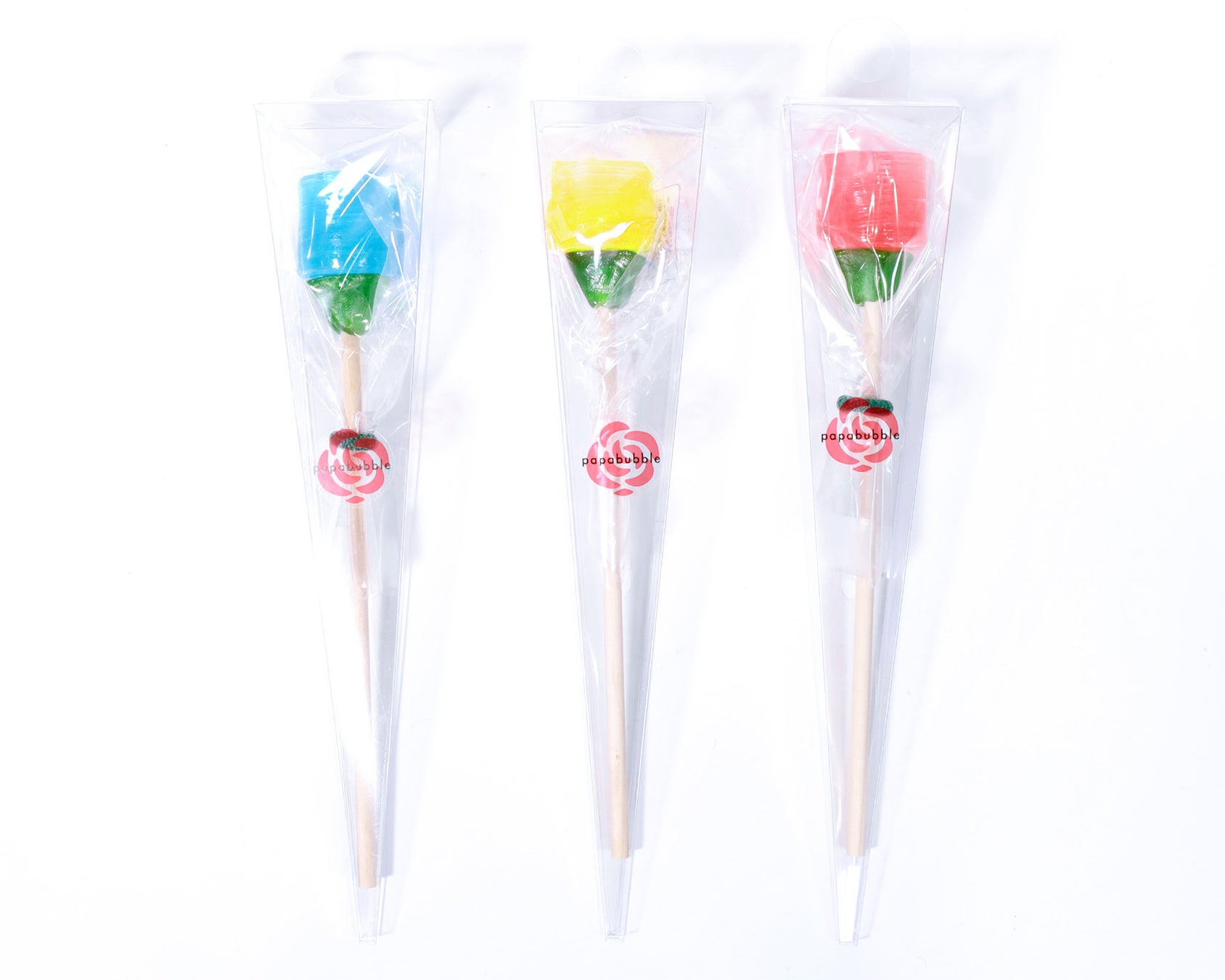 本物のバラを贈るのは少し恥ずかしい…そんな方におすすめなバラ型のロリポップキャンディ。爽やかなブルー、春らしいイエロー、可愛らしいピンクの3色をご用意しました。大切な方への感謝の気持ちを、一輪のフラワーロリポップで伝えてみてください。