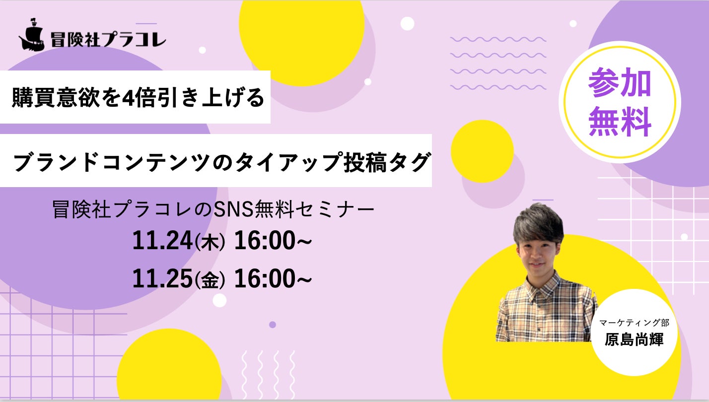 【CTRを40%向上!】11/24(木)25(金)限定!効果のあるブランドコンテンツのタイアップ投稿タグについて特別解説を特別セミナーを実施!
