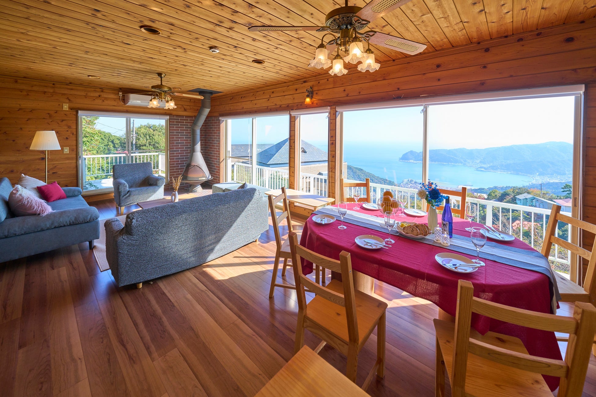 「スイートヴィラ 熱海オーシャンハウス」は、国内でも有数のリゾート地である熱海の高台に建つ一棟貸別荘です。2LDKの室内は、リビング・ダイニングの開放感あふれる大きな窓から広がる熱海の街と海が一望できる絶景が特徴的で、最大7名様(ダブル×2 シングル×2 ソファベッド×1)までのご利用が可能です。浴室では、プライベート空間で24時間いつでも自由に温泉が楽しめるので、湯治やリラックスステイといった温泉目的での滞在にも最適です。また、インターネット環境も完備しているためワーケーションにもおすすめで、熱海の美しい景色と温泉に癒されながら過ごせば、普段以上に仕事にも集中できることでしょう。