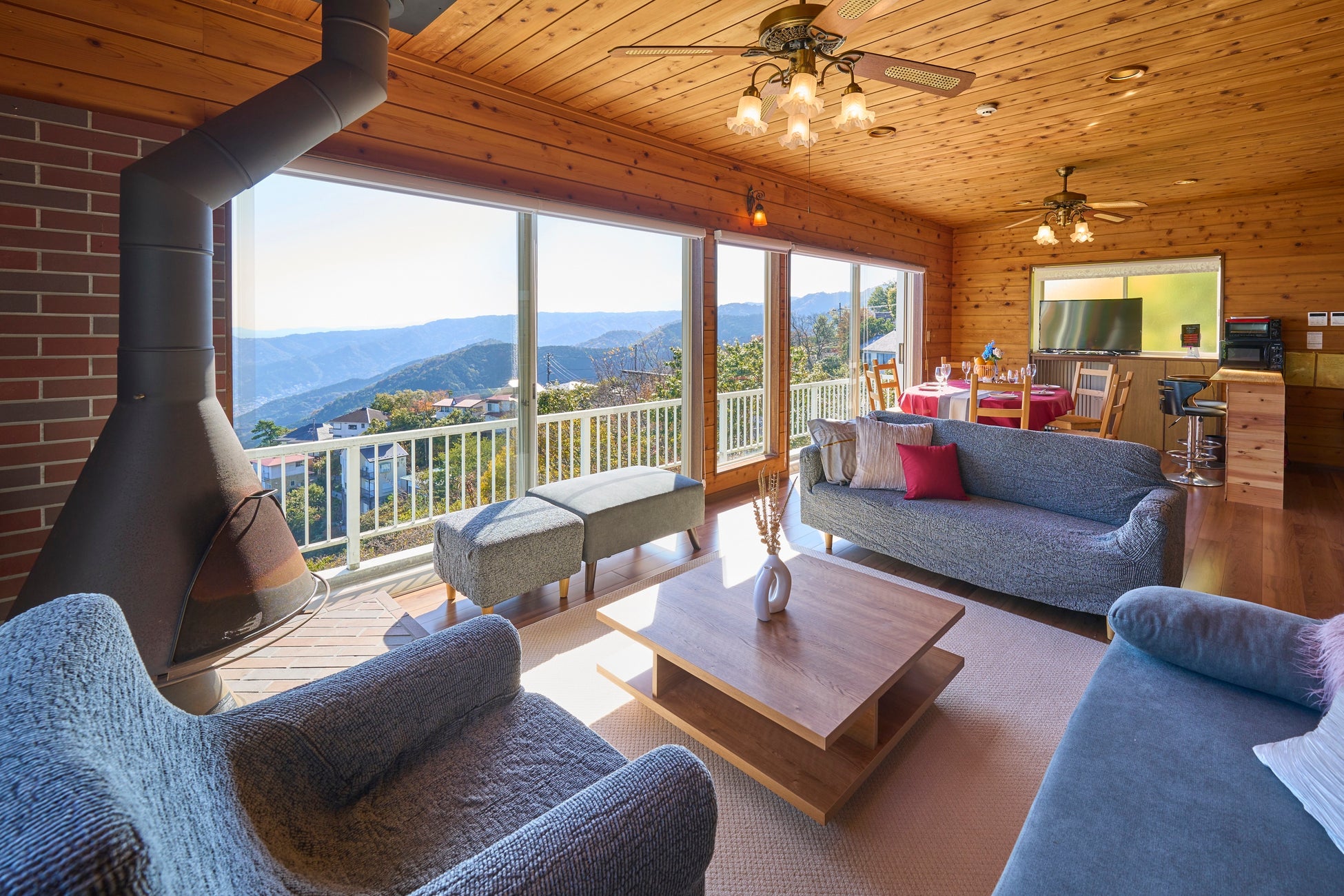 ダイニングテーブルセット(6人分)、ソファー一式、ダイニングスツール(2脚) ※薪ストーブはご利用いただけません。