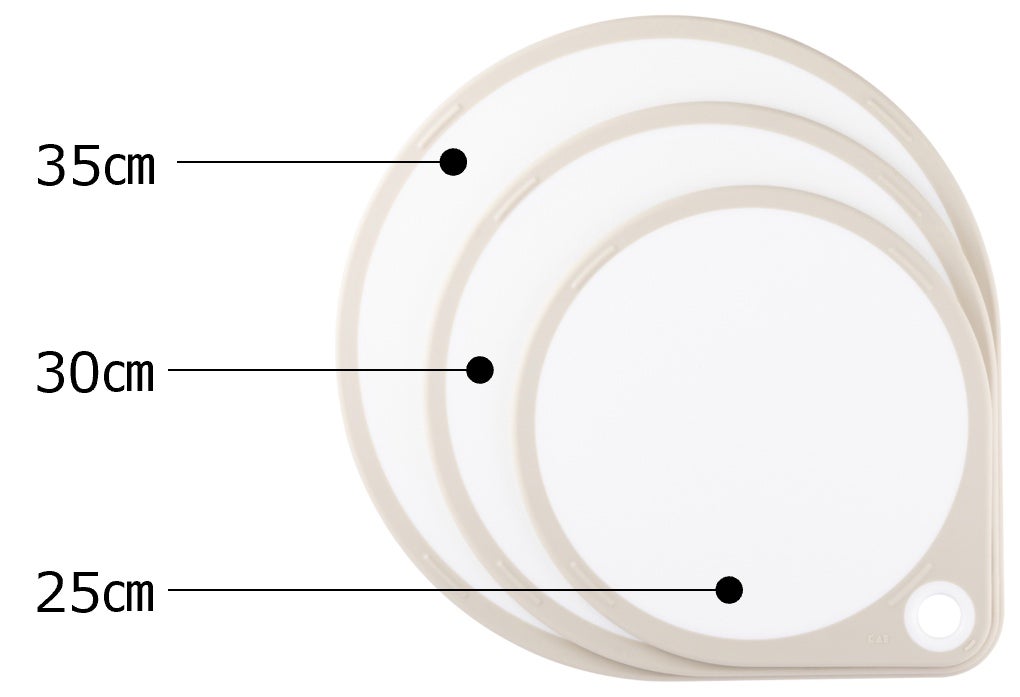 色は、ナチュラルで清潔感のあるホワイト×ベージュとクールでスタイリッシュな印象のチャコールグレー×ブラウンの2色を展開いたします。サイズは、25cm・30cm・35cmの3サイズをご用意。キッチンのサイズや、用途に合わせてお選びいただけます。