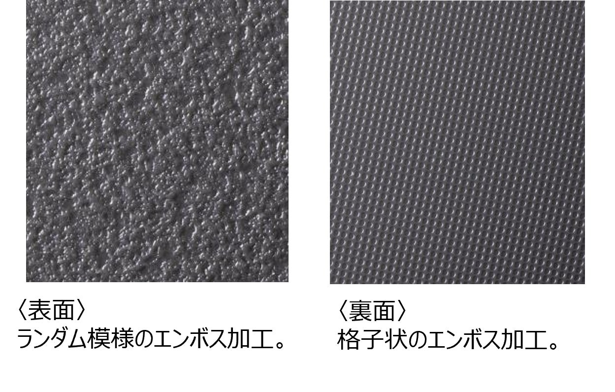 さらに、機能性を高めるために両面仕様と滑り止めを採用しました。裏表で異なる表面加工が施されているため、表面では野菜を切り、裏面では肉を切る、というように使い分けることができます。全周をエラストマーで覆っているため、軽くてもまな板が滑りにくく、食材を切る際のストレスが軽減されます。