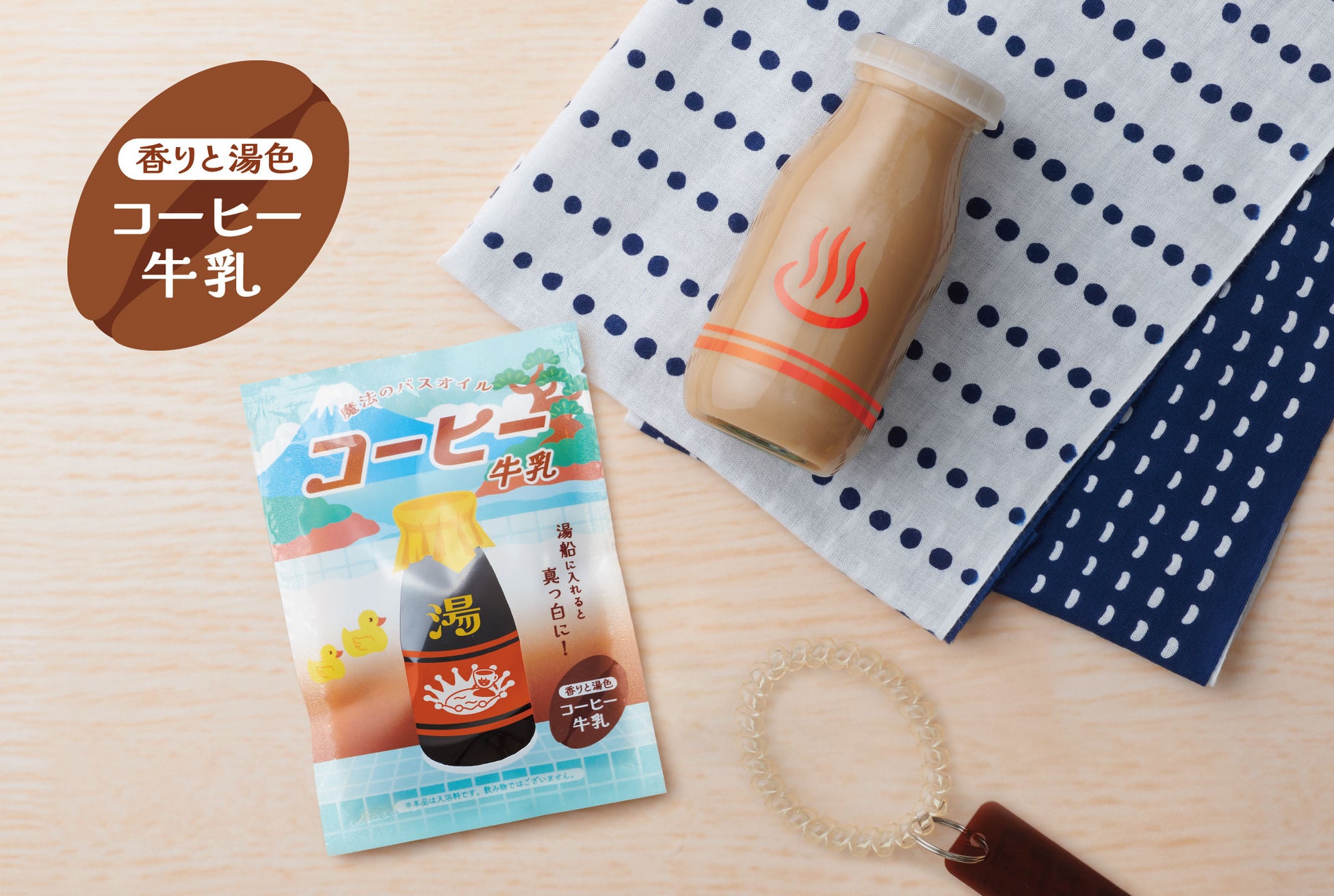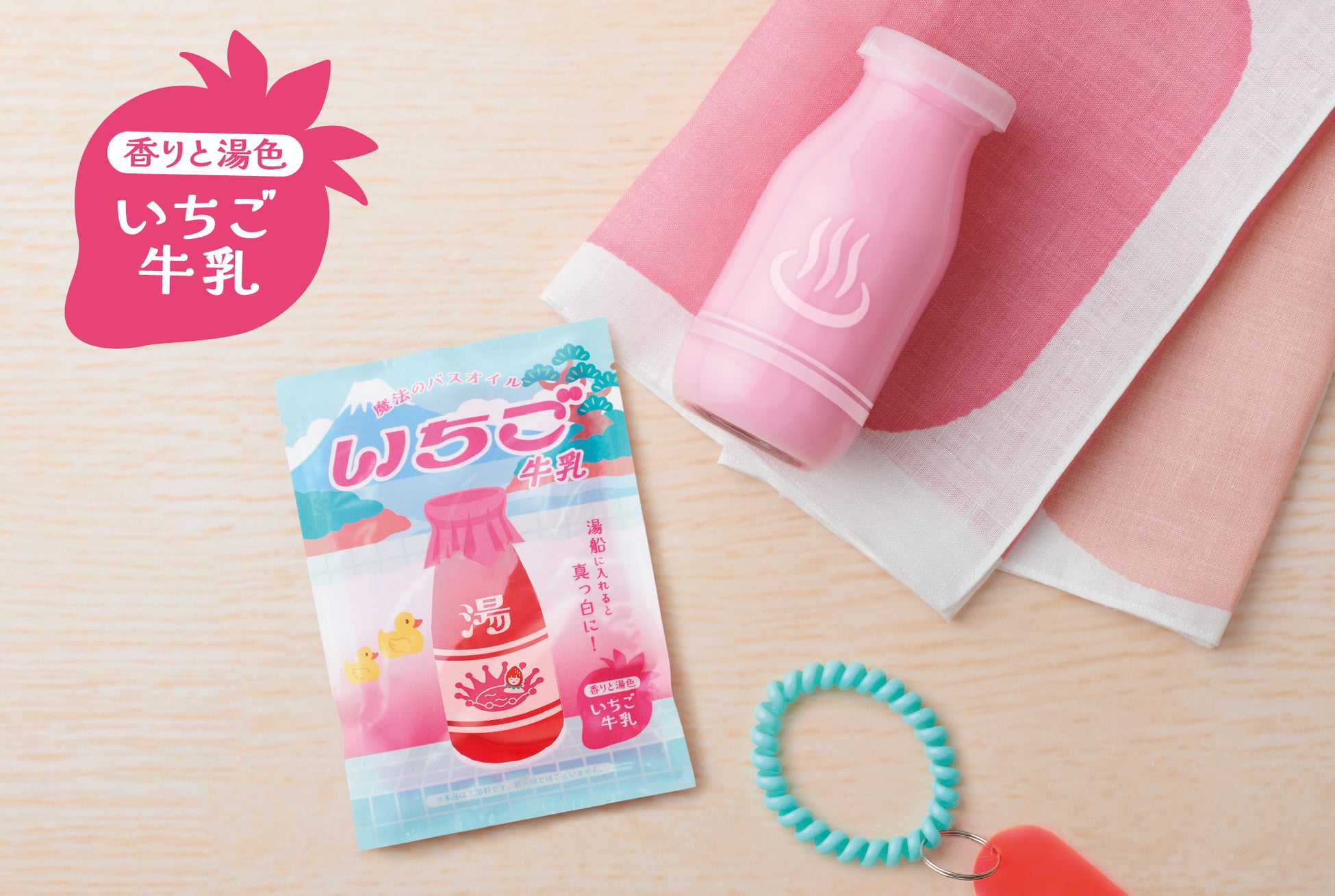 “銭湯”で定番の飲み物がバスオイルに!?魔法のような変化が楽しめる『魔法のバスオイル』に、「コーヒー牛乳/いちご牛乳/フルーツ牛乳」が新登場。10月30日(水)より販売開始。