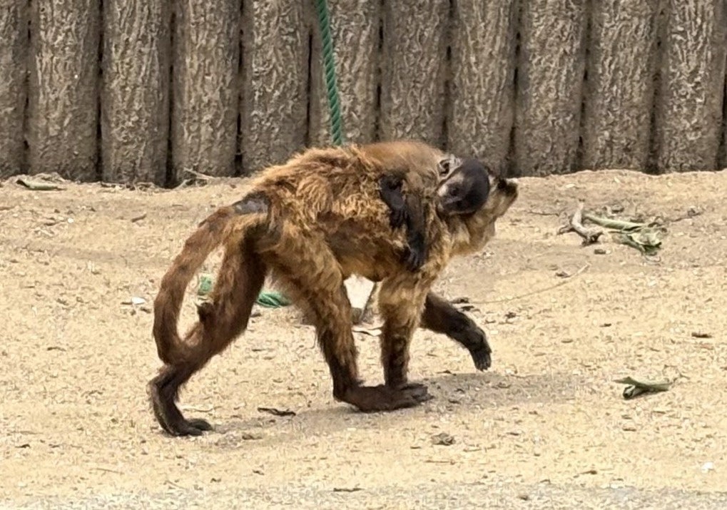お母さんの背中で寝ていることが多いですが、最近は起きている時間も増え、そろそろ他の個体にも掴まる時期です。おんぶ交代の瞬間が見られたらラッキー!