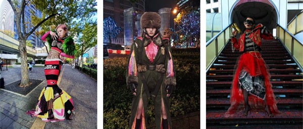 ※写真は過去に学生が創作したスタイリングを活動エリアと合成したイメージです。展示衣装とは異なります。