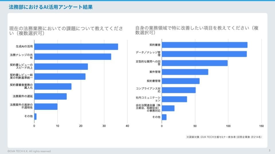 GVA TECHでは、こうした状況を受け、2026年2月に「法務AI研究所」(プレスリリースの詳細はこちら)を設立し、AI技術の実践的研究や法務AIの実装検証とともに、セミナーの開催など情報発信やノウハウの還元を積極的に行っています。