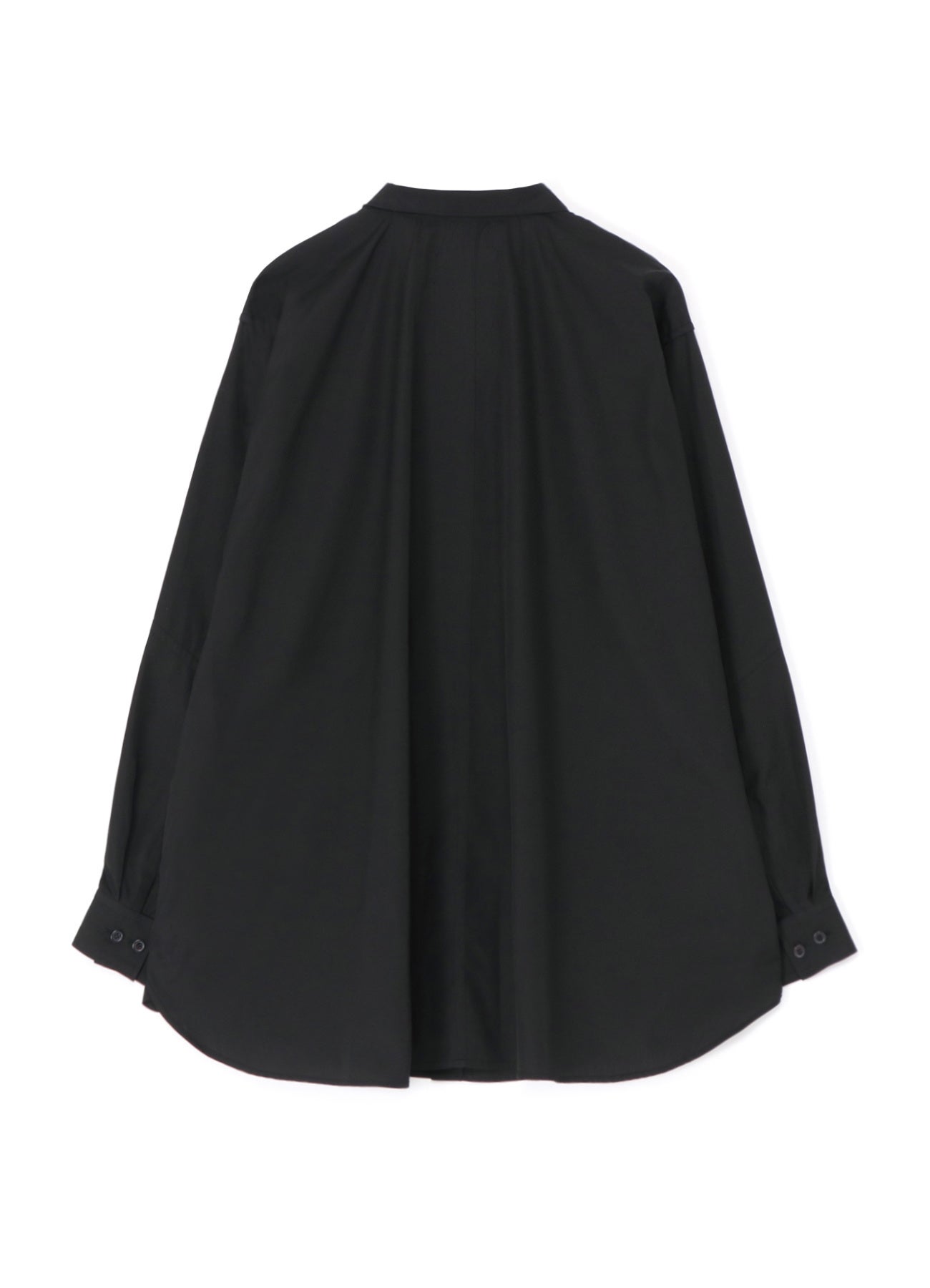 ゆったりしたシルエットの綿ブロード素材のシャツには、内側の胸ポケットや、袖のスリットのボタンなど、まるで裏返したかのようなディテールが付き、シンプルなシルエットの中で静かにインパクトを与えます。