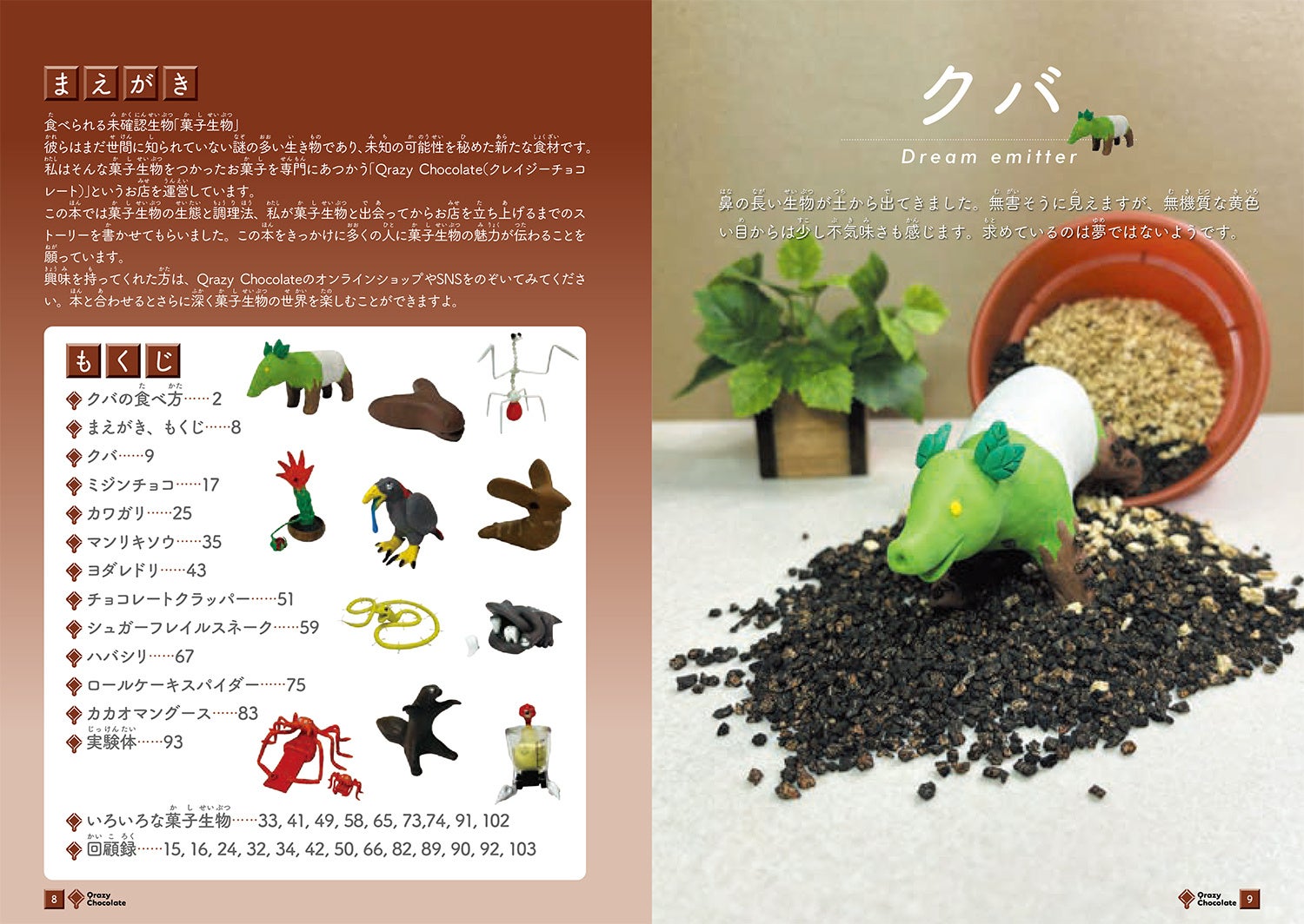 私はそんな菓子生物をつかったお菓子を専門にあつかう「Qrazy Chocolate(クレイジーチョコレート)」というお店を運営しています。この本では菓子生物の生態と調理法、私が菓子生物と出会ってからお店を立ち上げるまでのストーリーを書かせてもらいました。この本をきっかけに多くの人に菓子生物の魅力が伝わることを願っています。