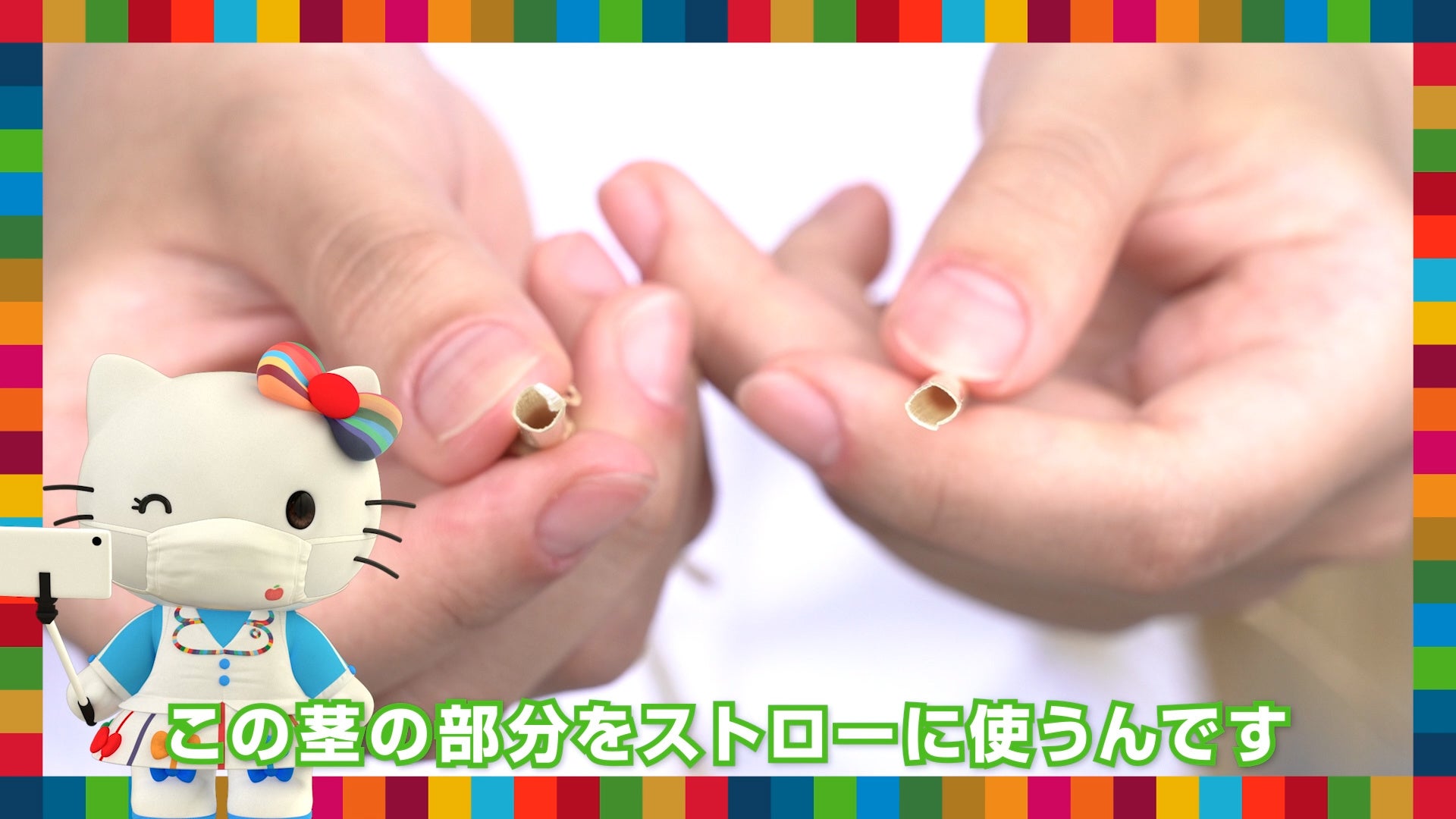 ハローキティがSDGsをいろいろな角度からわかりやすく紹介しています。7月28日に公開した最新作では、福井県高志高校の4人の高校生が、地域の特産品の大麦の普段廃棄されてしまう茎の部分をストローとして再利用し、プラスチックストローの代わりにする活動を紹介。麦ストローの普及を目指してさまざまな所に働きかけ、大麦を作る方、加工する方、提供する方、そして使う方、みんなでパートナーシップを組み、力を合わせて活動している様子を紹介しています。