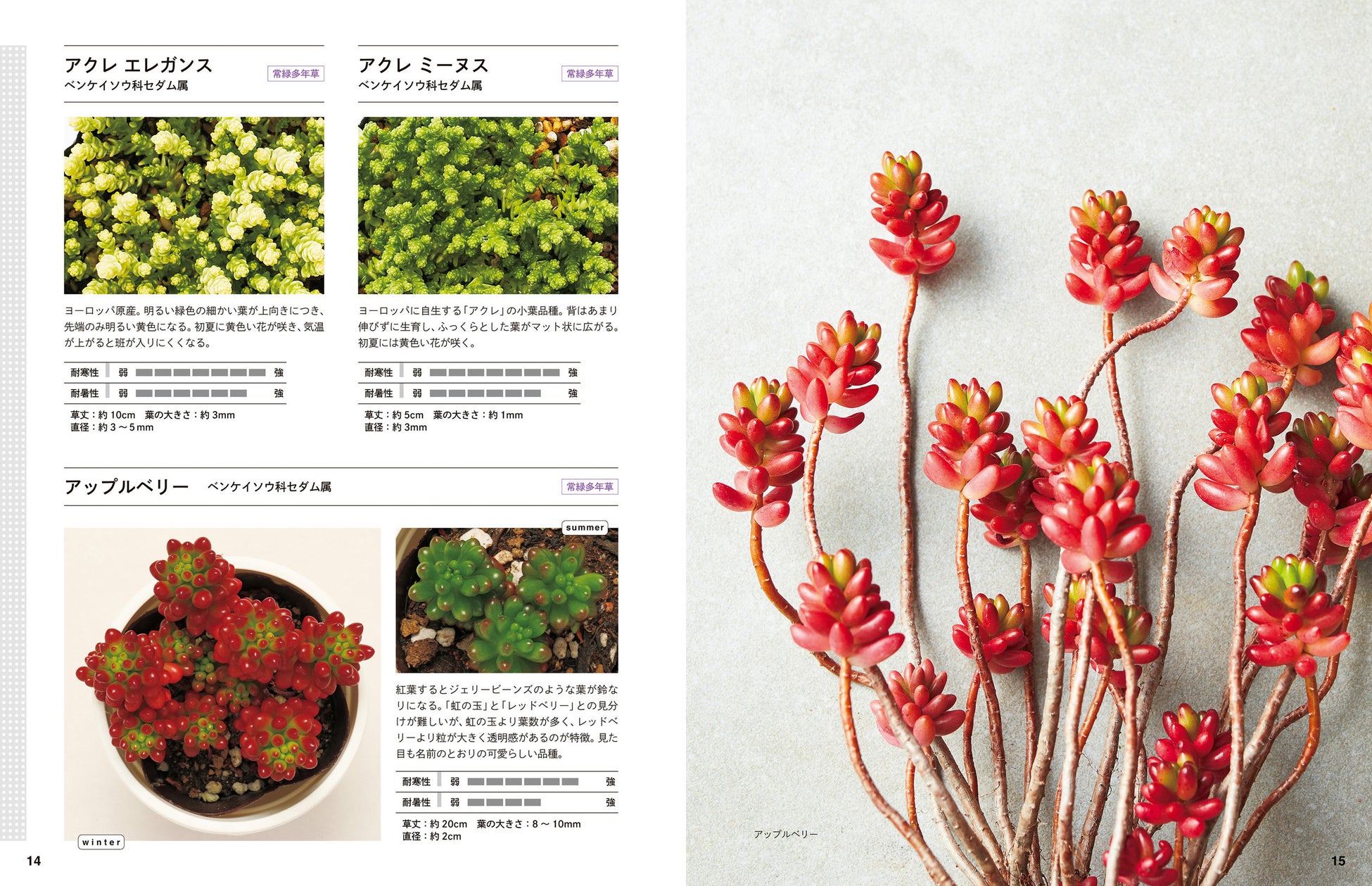 暑さ寒さに強いものが多く、育てやすく、よく増えて、紅葉も楽しめるセダム。その魅力や奥深さを存分に感じられる一冊です。