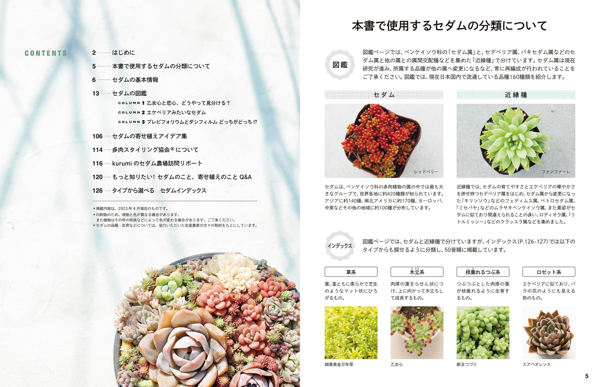 さらに、多肉スタイリング協会®代表kurumiさんのセダム農場訪問リポートも掲載。各農場の環境やこだわりをお伝えします。