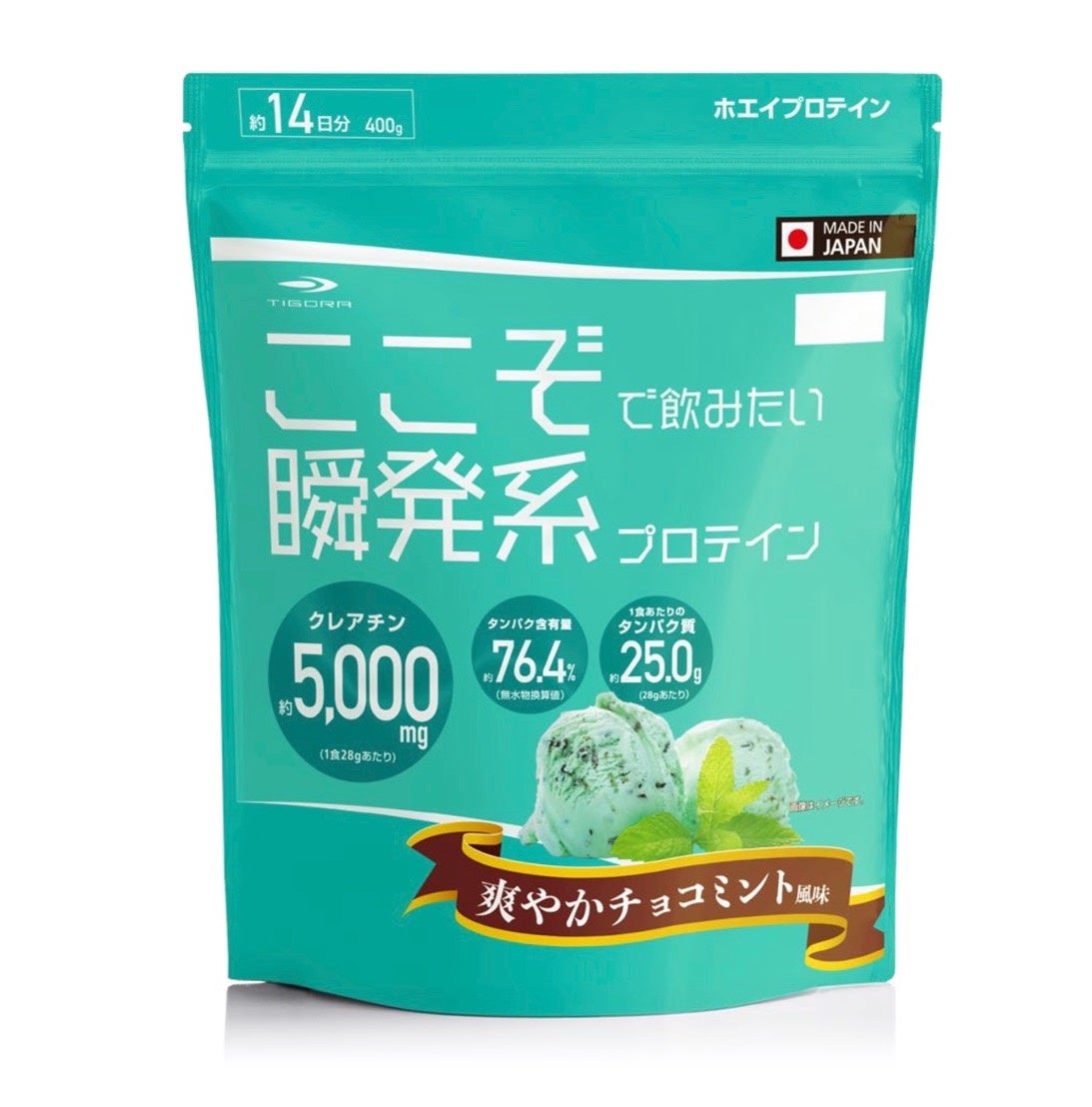 エネルギーを素早く生み出し、動く力を底上げするクレアチンを5000mg配合した、ここぞというときにおすすめのプロテインです。高タンパク含有量76.4%、1食あたり25.0gのタンパク質が摂取可能。甘くて爽やかなチョコミント風味に仕上げました。