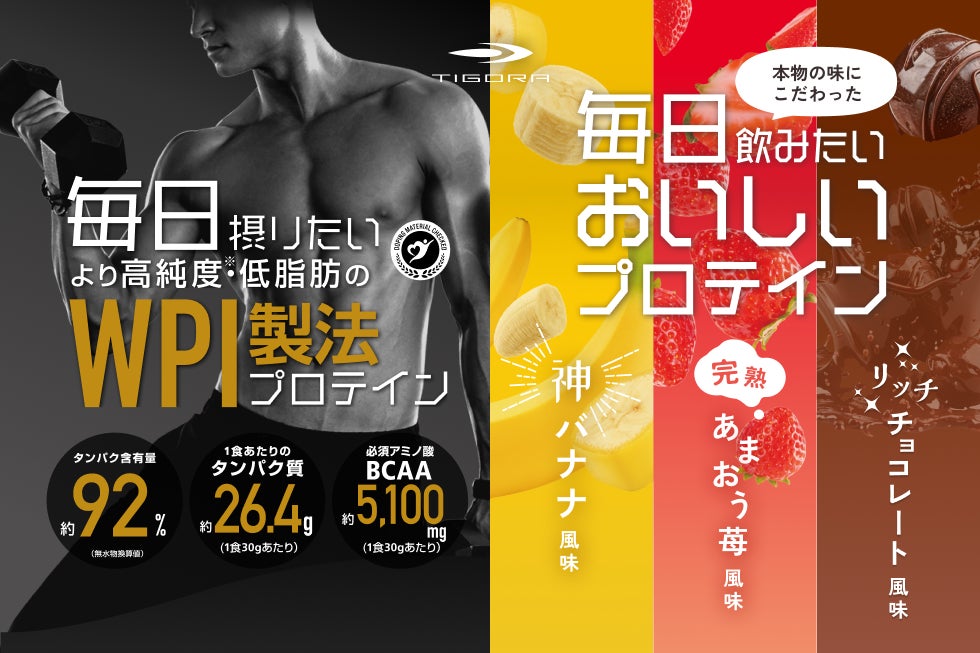 TIGORA、スポーツ用品販売の知見を活かし「毎日摂りたい WPI製法プロテイン」、「毎日飲みたい おいしいプロテイン」をはじめとするプロテイン5種を新発売!