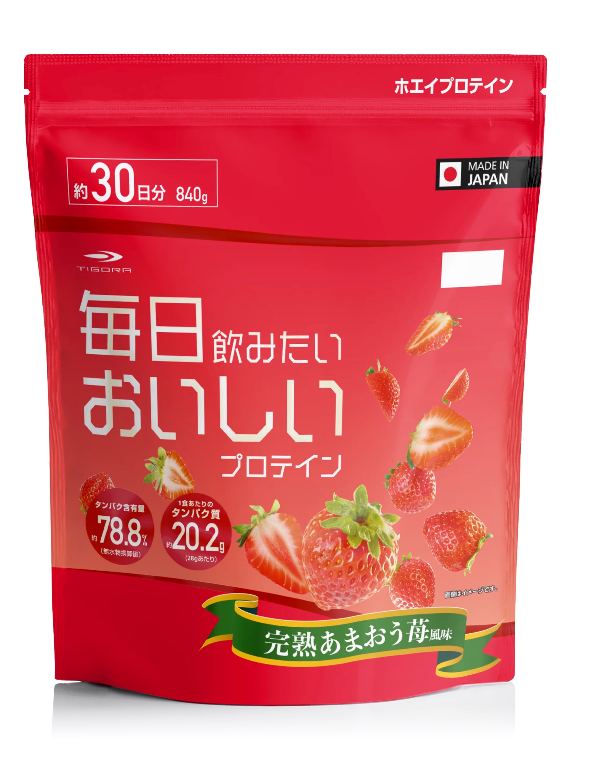 フレーバーは完熟あまおう・神バナナ・リッチチョコレート風味の3種類をご用意。おいしく手軽に不足しがちなタンパク質を補えるため、トレーニングをする方はもちろん、健康を意識したい方にも最適です。