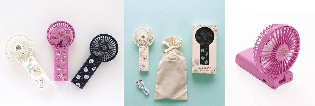 ブランドを象徴する花柄であるクリザンテーム(西洋菊)や、アイコンキャットのヌネットやジプシーをプリントしたハンディファンは、持ち運ぶのも使うのも楽しくなりそう。ギフトにも最適な華やかなパッケージ入りです。