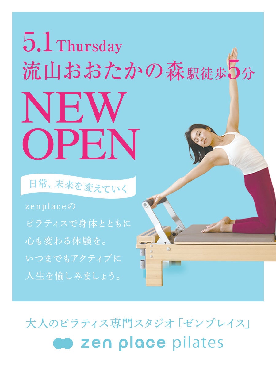 最先端研究結果・科学をもとに、グローバルな環境で最新技術とDXで挑戦を重ね、サービス業界にイノベーションを起こしている最先端のWeb3.0 DX企業であり、ウェルビーイング創造のリーディングカンパニーである株式会社ZEN PLACE(本社:東京都渋谷区 代表取締役:尾崎成彦)は、東武野田線 / つくばエクスプレス 流山おおたかの森駅から徒歩5分の好アクセス・好立地に各種マシンを完備した最新ピラティス専門スタジオ「zen place pilates 流山おおたかの森スタジオ」を2025年5月1日(木)にオープンします。