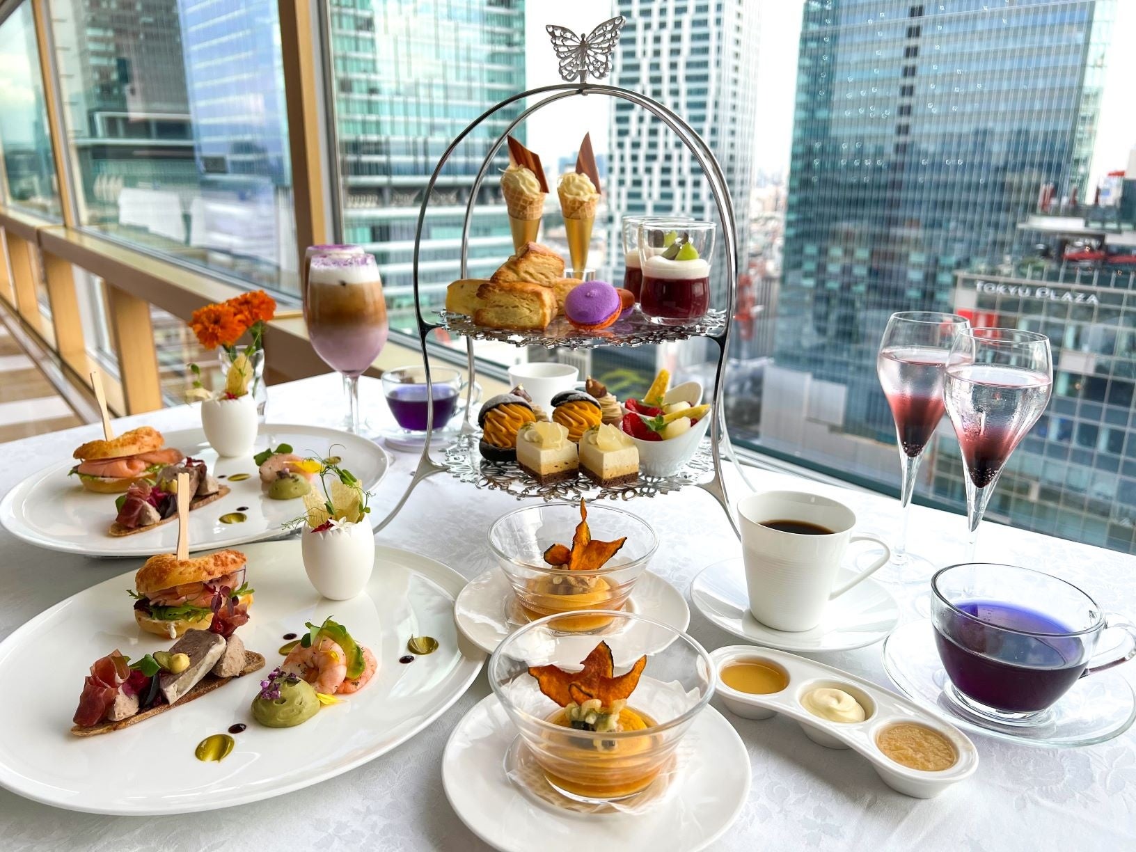 日々変わりゆく渋谷の街と季節の移り変わりを眺めながら、足元まで抜ける風景が天空にいるかのように感じる特等席で、大人のアフタヌーンティータイムをお過ごしください。