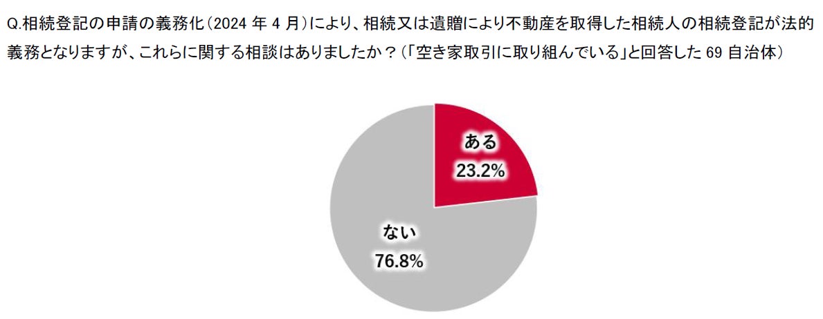 2024年4月に開始する「相続登記の申請義務化」に関する相談を受けた自治体は約2割が「あった」と回答