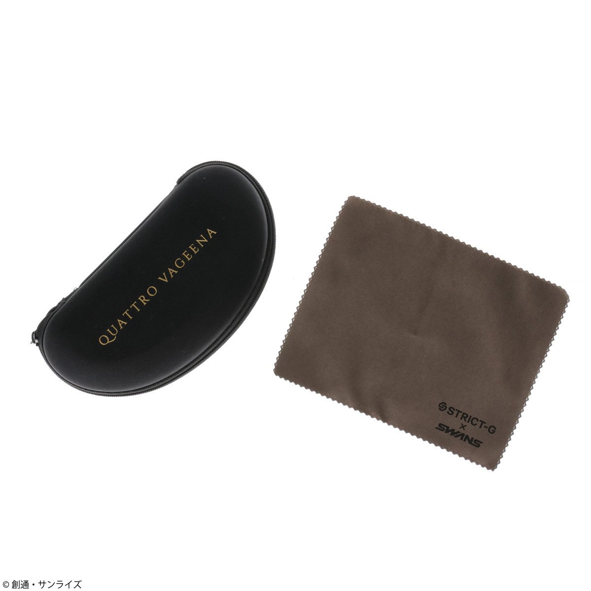 本商品は『機動戦士Zガンダム』に登場するキャラクター「クワトロ・バジーナ」をイメージした、スポーツサングラスのリニューアルモデルです。シェイプされた大きめなレンズは紫外線の侵入を効果的に抑え、調整可能なノーズパーツにより、まつ毛にも当たりにくく、テンプルのワンポイント「A.E.U.G.」「QUATTRO VAGEENA」のロゴが、作品の世界観をスポーティーに演出します。又、レンズの左隅には「SWANS」のロゴもレーザーで刻印されています。今回は、シルバーミラー×スモークカラーモデルに加え、ゴールドミラー×スモークカラーモデルをプラスした2色展開。「QUATTRO VAGEENA」のロゴ入りセミハードケースと、セリートが付属いたします。