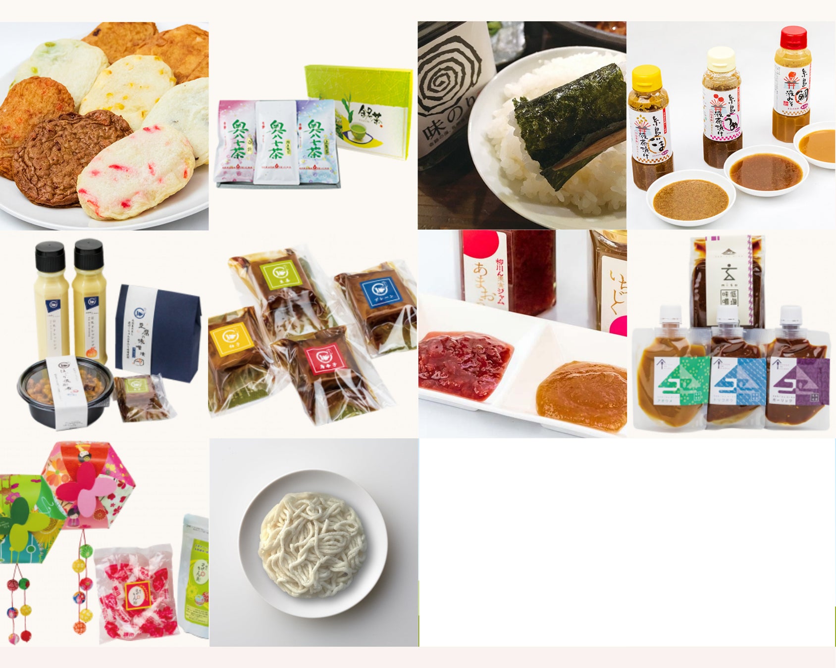 10種類のバリエーション豊かなギフトが勢ぞろい。ブランド価値の高い糸島の産品、八女茶、有明海の海苔など、福岡県ならではのラインナップが展開されています。