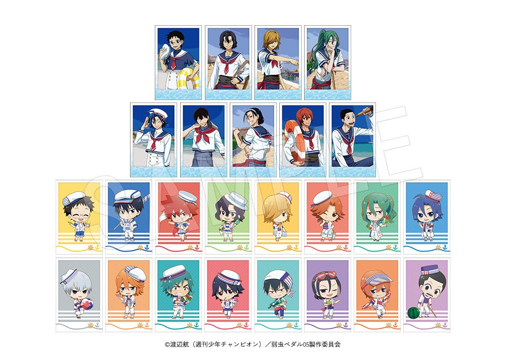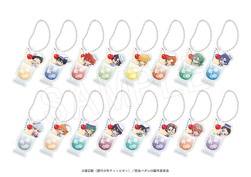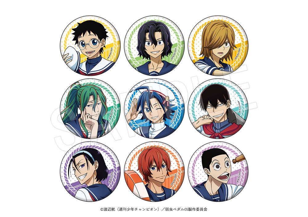 ラインナップ:小野田 坂道、今泉 俊輔、鳴子 章吉、手嶋 純太、青八木 一、鏑木 一差、巻島 裕介、真波 山岳、黒田 雪成、葦木場 拓斗、銅橋正清、新開悠人、荒北 靖友、東堂 尽八、新開 隼人、御堂筋 翔(全16種)