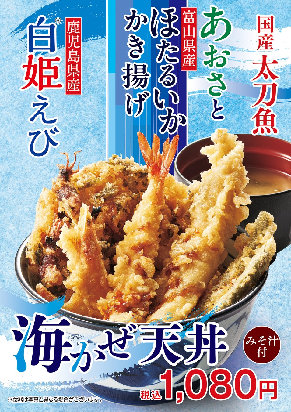 天丼てんやの初夏限定メニューが登場!爽やかな磯の香りがふわっと広がる『海かぜ天丼』と天丼てんやの麺シリーズ第1弾 『ほたるいかかき揚げ冷やしそば』が2025年4月24日(木)より販売開始!