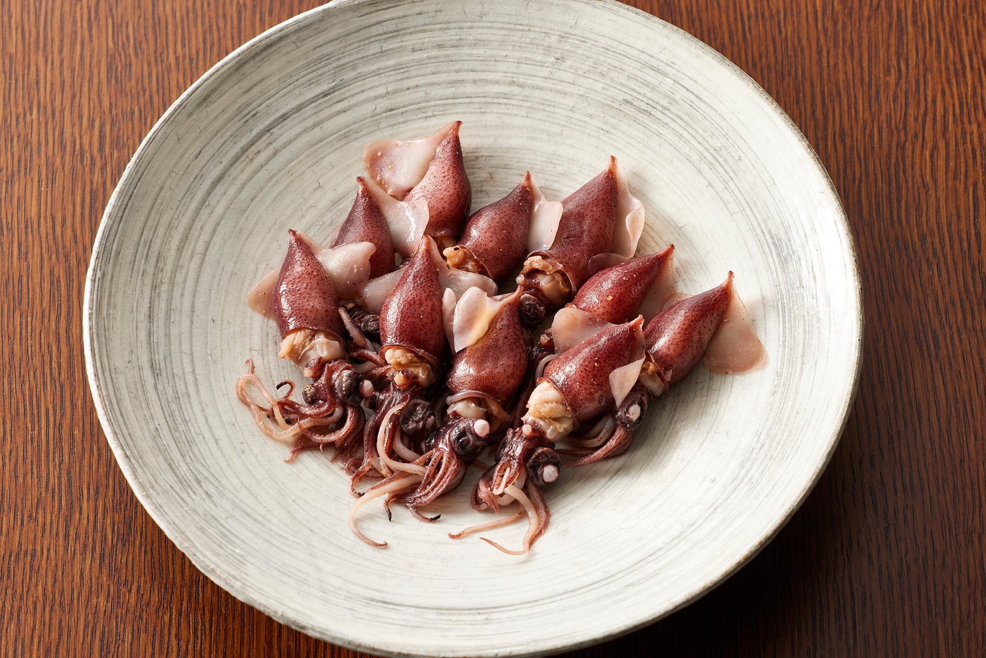 メイン食材の1つである「ほたるいか」は、 プリプリ食感の身、トロリとした中身を楽しめる食材です。