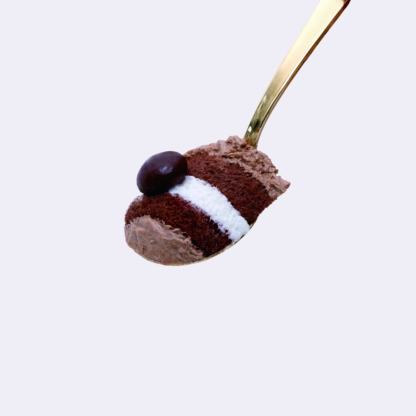 ココアスポンジにチョコクリームとシャンテリークリームを重ね、地層を表現。上面には「キャラパキ 発掘恐竜チョコ 大袋」のチョコや恐竜の卵に見立てた生ミルキー、チョコチップを飾りました。中に潜んだ「モグッと誕生!恐竜エッグチョコ」を掘り当てるのも楽しい、ワクワク感のあるパフェデザートです。本コラボレーション限定の描き下ろしデザイン“恐竜に乗ったペコちゃん”をあしらったカップとペーパープレートにも、ぜひご注目ください。