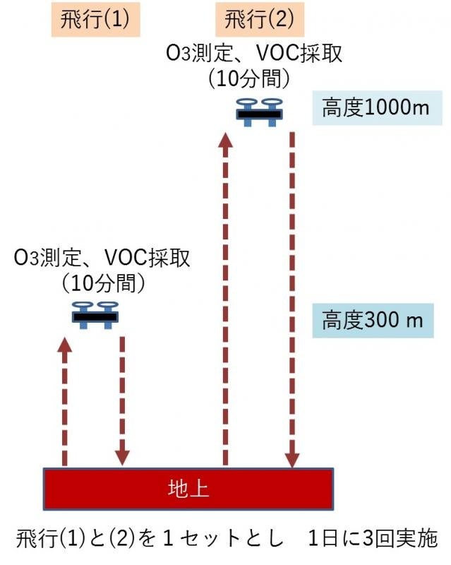 ・測定項目:オゾン、VOC(飛行①、②)、気温、湿度、気圧(飛行②)