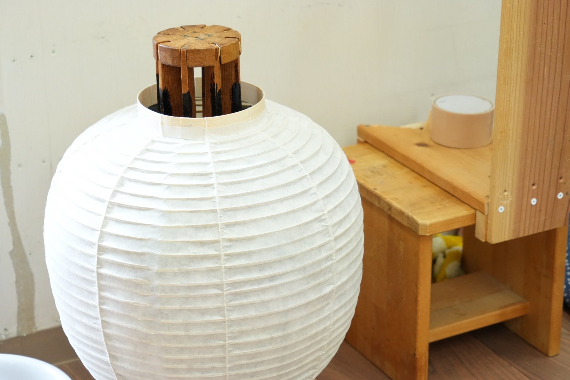 提灯のカーブになっている部分に和紙を綺麗に張っていくのは特に難しく、どうしても皺になってしまう。