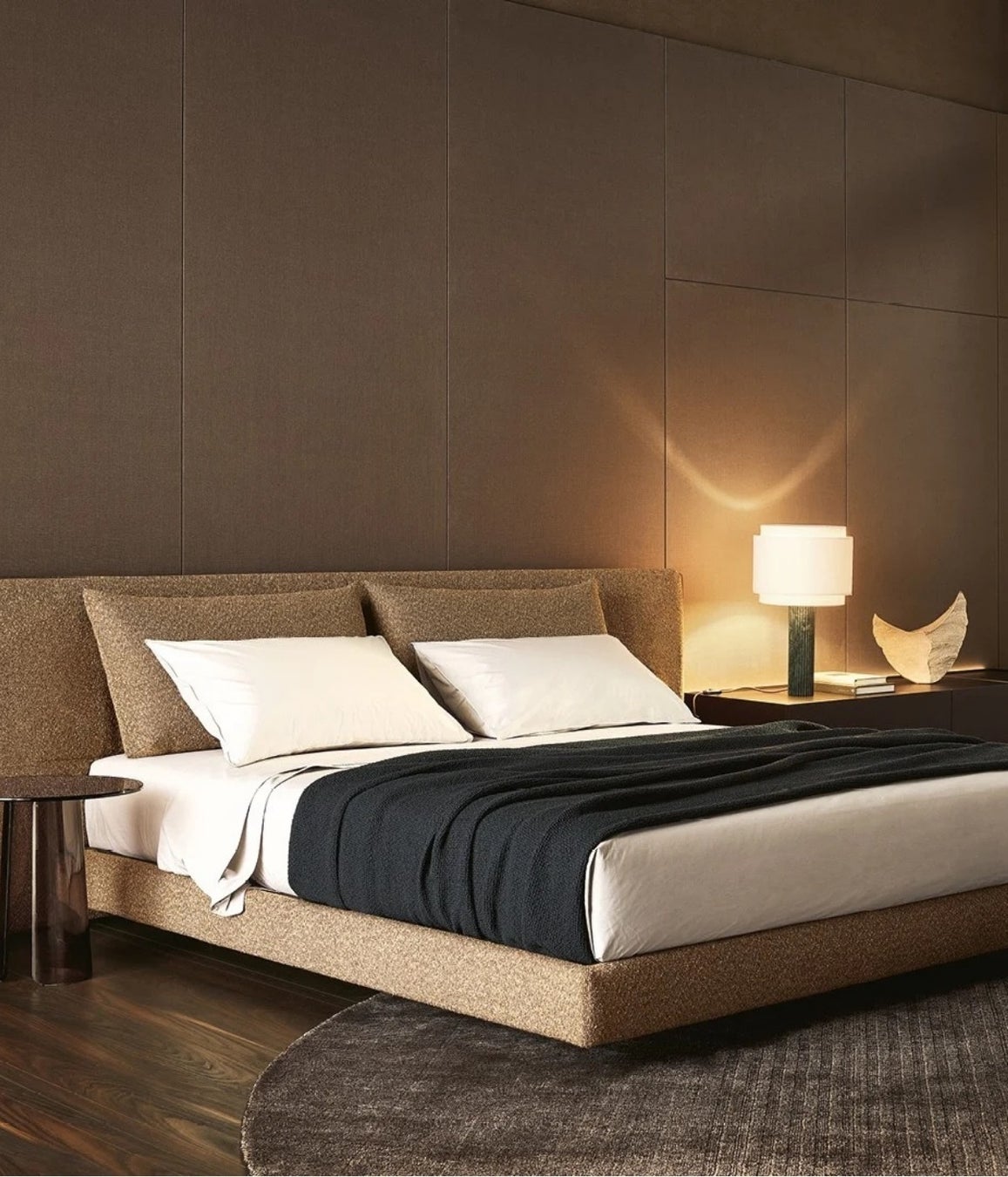 静寂と安らぎに満ちた夜の空間へ誘うコレクション。上質な素材と無駄のないフォルムが、最もパーソナルな時間を過ごすための寝室を創り上げます。一日の終わりを告げる、穏やかで心地よい眠りのためのデザインです。