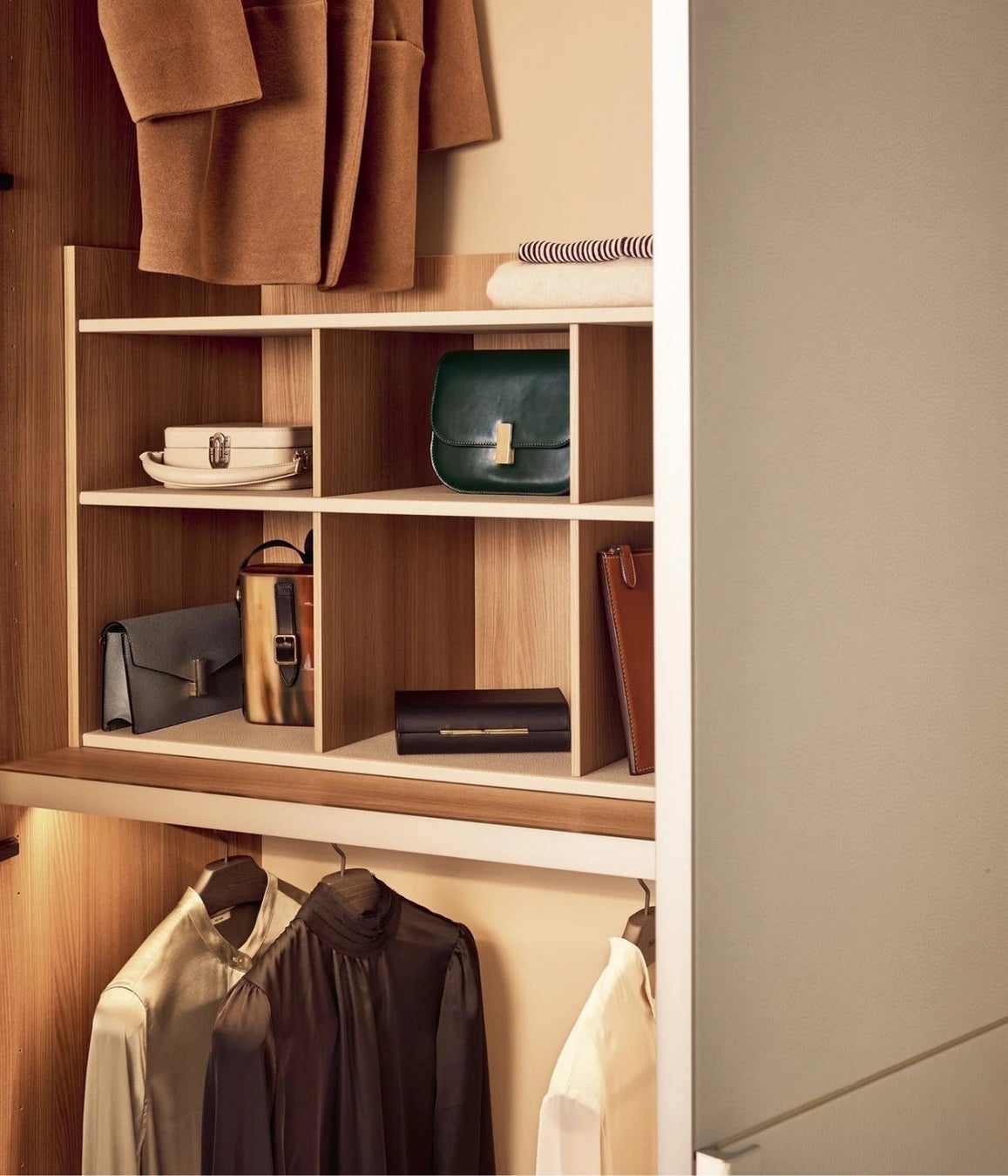 SENZAFINE(センツァフィーネ)は、あらゆる建築空間に完璧に適応する、無限の構成力を秘めたワードローブシステム。空間に溶け込むデザイン性と、一人ひとりのニーズに応える柔軟な収納力を両立し、美しく整えられたプライベート空間を実現します。