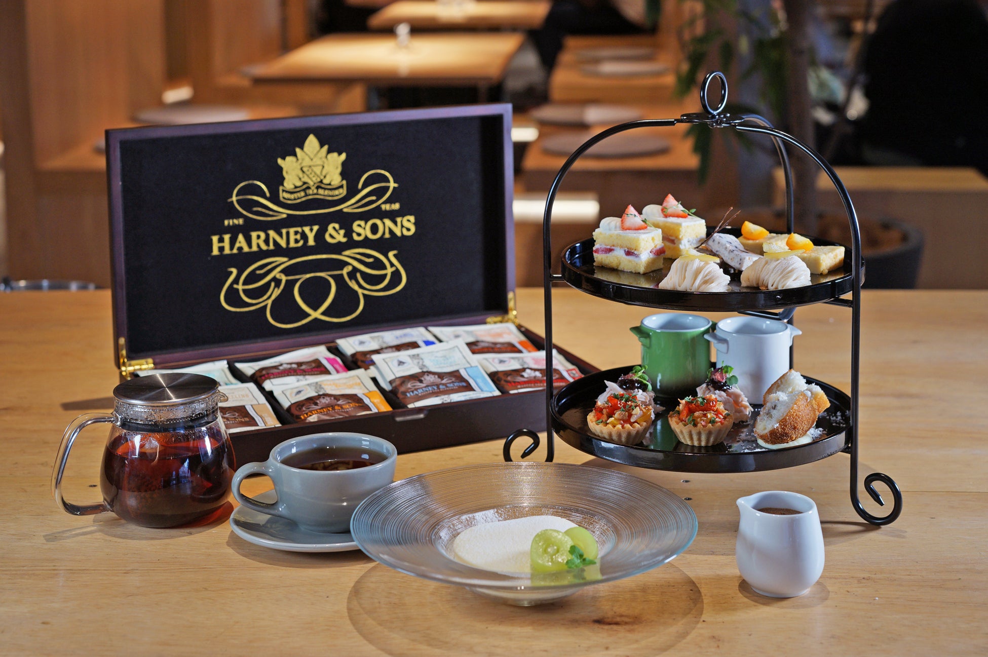 飲み物は、300以上のフレーバーを展開するニューヨーク発のプレミアムティーブランド「HARNEY&SONS」から厳選された8種の紅茶をご用意。お好きなフレーバーをティーポットでお楽しみいただけます。