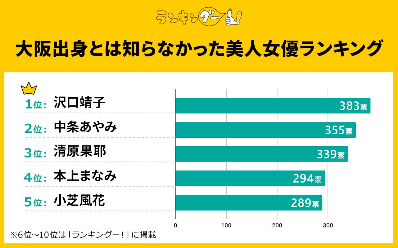 ランキングー!では大阪出身とは知らなかった美人女優ランキングを調査。全年代の男女(性別回答しないを含む)4,870名にアンケートを行い、TOP10を決定しました。ここではTOP5をご紹介します。