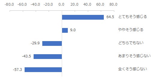 また、該当の銀行で資産運用を行っている利用者について、資産運用に対する理解向上度別にNPSを分析したところ、「とてもそう感じる」と回答した人のNPSは64.5ポイント、また「ややそう感じる」と回答した人も9.0ポイントと業界平均や他の回答と比較しても非常に高くなりました。銀行からの案内やアフターフォローによって、利用者の金融や資産運用の知識や理解を高めることの重要性がうかがえる結果となりました。