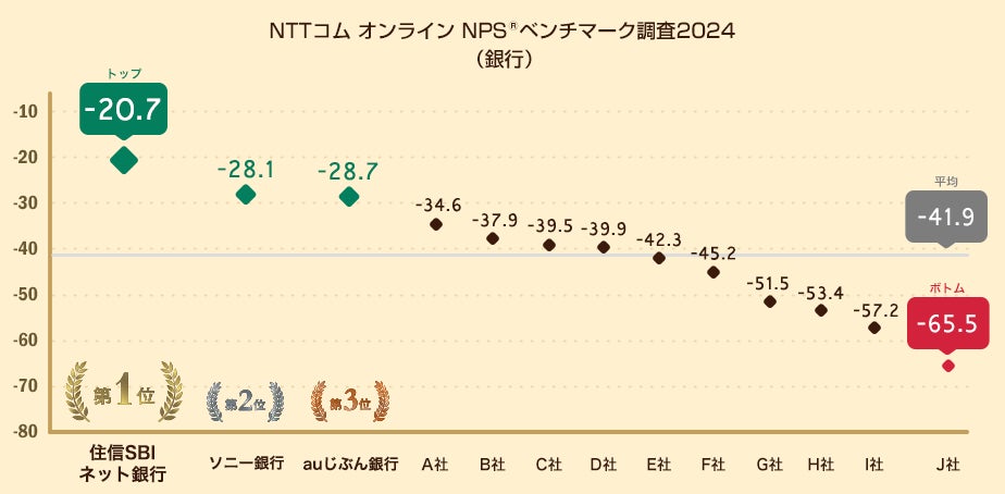 NTTコム オンライン・マーケティング・ソリューション株式会社(本社:東京都品川区、代表取締役社長:塚本 良江、以下NTTコム オンライン)は、NPSベンチマーク調査2024銀行部門を実施しました。この結果、最もNPSが高いのは住信SBIネット銀行となり、2年連続で1位となりました。