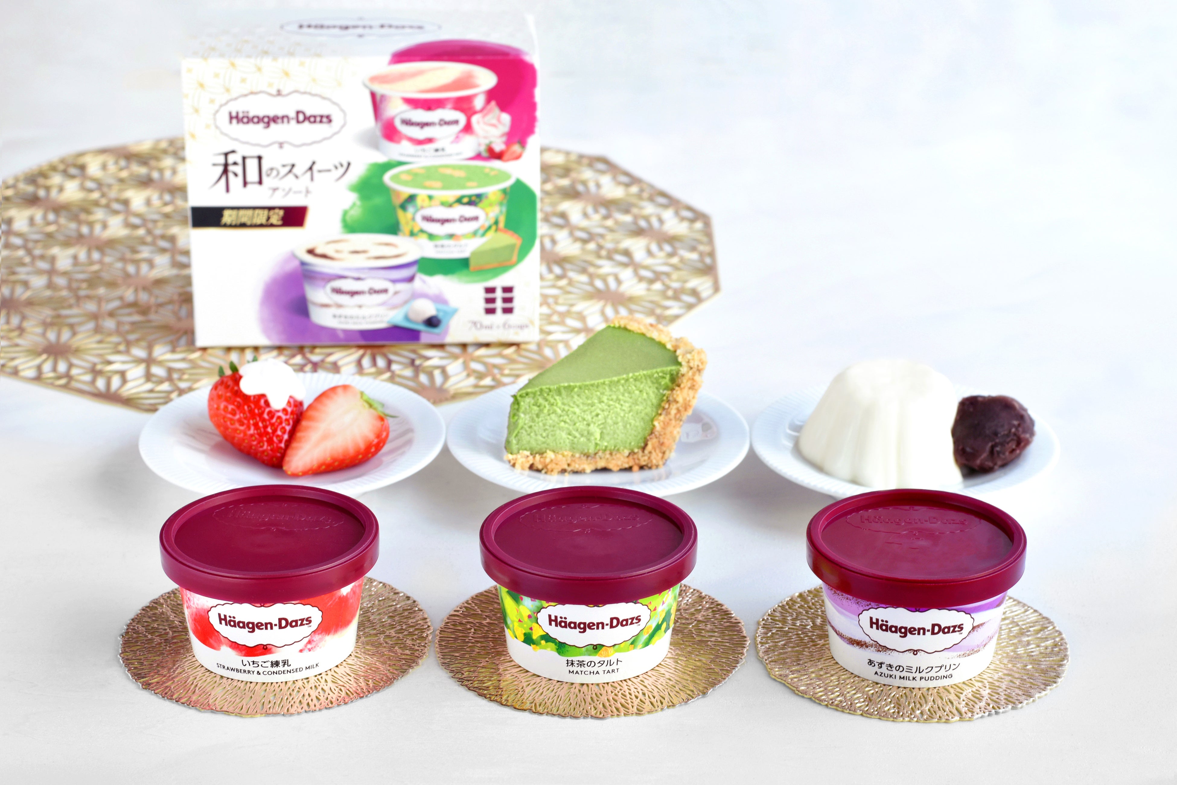 ■商品情報 ハーゲンダッツ アソートボックス『和のスイーツ アソート(いちご練乳・抹茶のタルト・あずきのミルクプリン)』 (期間限定)