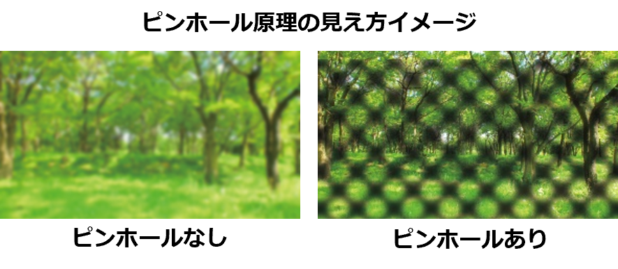 また、「目もとがオープン仕様でも視力が悪くて見えない」というお客様の声から、アイピースにはマルチピンホールも採用!本アイピースを装着すれば、ピンホール効果の応用で視力を確保できるため、視力の弱い方や手元のピントが合いづらい方でも安心してご利用いただけます。
