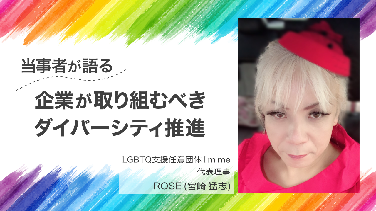 2019 年 12 月に、LGBTQ 当事者及びアライアンス(支援者)と共に、LGBTQ 支援任意団体 Im me を結成し、性的マイノリティーの人権啓発活動を目的とした活動に取り組んでいます。活動は主に、行政関係、教育現場、市民人権講座、一般企業でのダイバーシティー研修等を行っています。