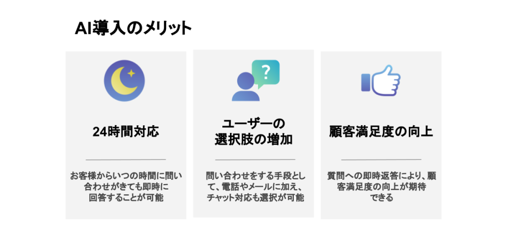 お客様は、実証実験前と同じチャットツールを通じ、有人チャットと同じ自然言語の会話でカスタマーサポートサービスを利用できます。AIチャットへの移行により、24時間対応が可能になり、有人チャットの時間外でも迅速な回答生成ができることで、顧客満足度の向上が期待されます。
