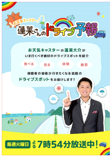 弊社提供の新番組「お天気キャスター蓬莱さんのドライブ予報」がはじまります