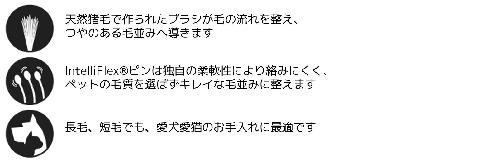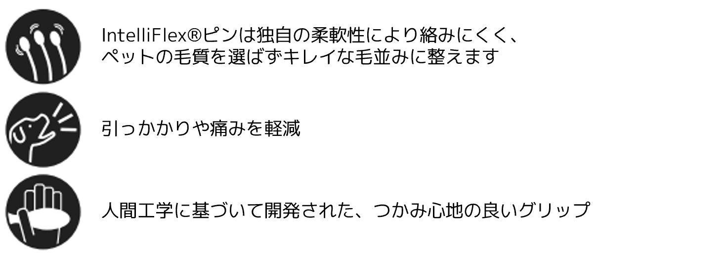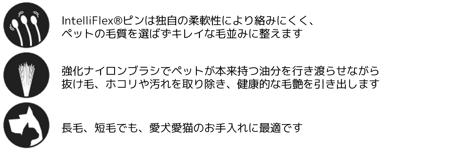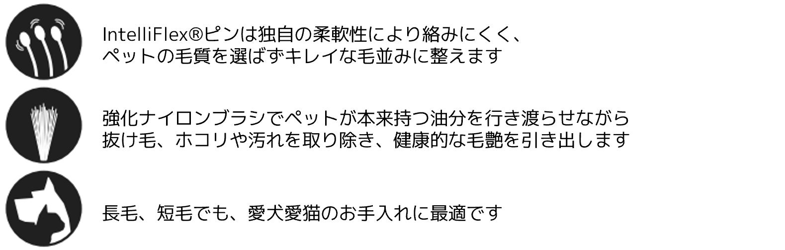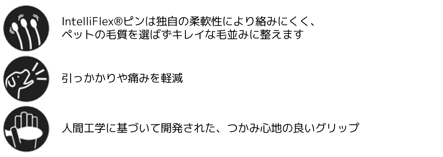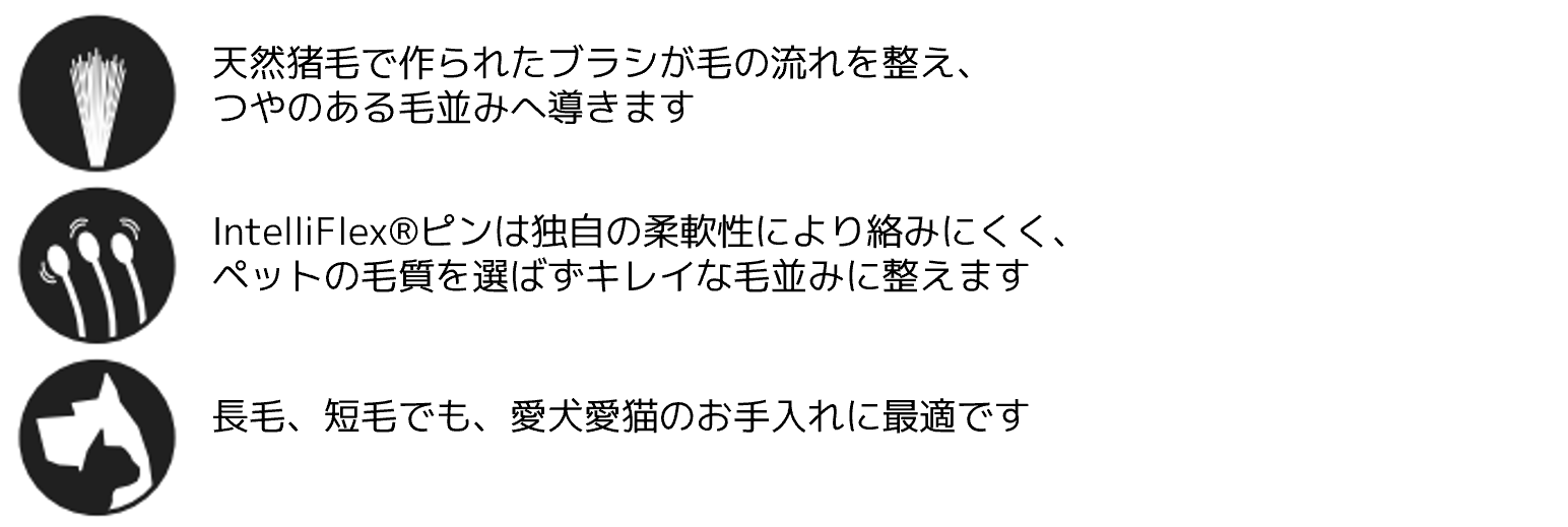 片側に独自のIntelliFlex®ピンを採用し、もつれなどを優しくブラッシング。