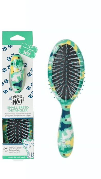 そんな『ウェットブラシ』から登場した「ペットブラシ」に、以前よりご要望の多かった中型・大型種用の「ペットブラシ ラージブリード ディタングラー ドッグプリント」が新登場!ブラシには360度回る柔らかなIntelliFlexⓇピンを使用しており、毛のダメージを抑えながらやさしくブラッシングできるよう設計されています。適度な硬さがあり、ロングからショートまで様々な長さのペットの毛も絡まずにブラッシングできます。優しい肌当たりで、ブラッシングが苦手なペットでも嫌がらず、マッサージブラシとしてもご使用いただけるのも特徴。ブラッシングを通して、大切なペットとのコミュニケーションをお楽しみいただけます。また、人間工学に基づいたつかみ心地の良いグリップで、飼い主もストレスなくご使用いただくことができます。