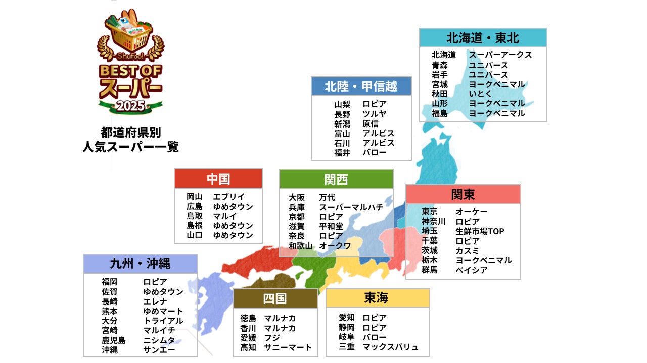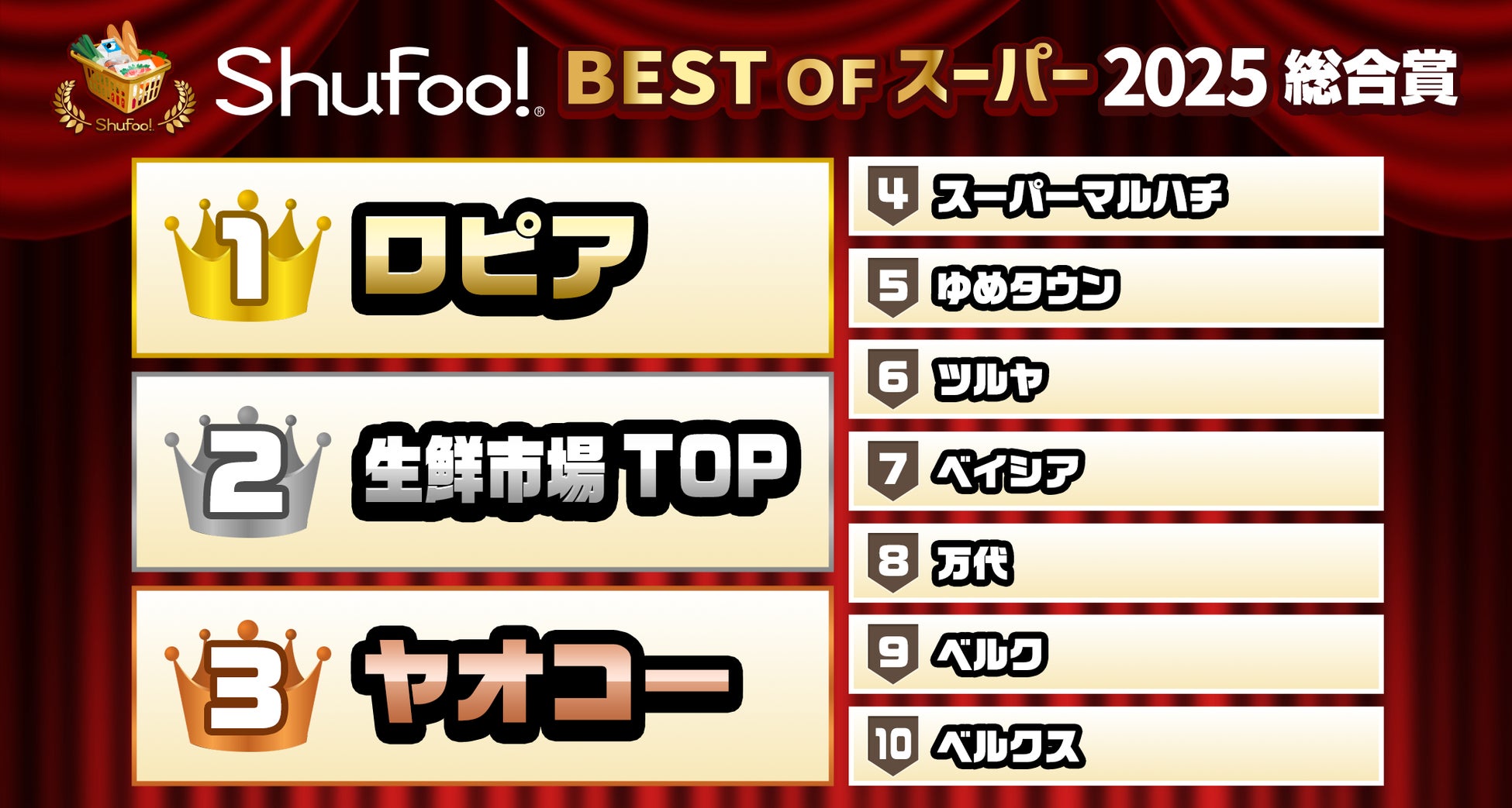 Shufoo!、最高のスーパーを投票で決める「ベストオブスーパー2025」結果発表投票数13万5,922票! 総合1位ロピア、2位生鮮市場TOP、3位ヤオコー