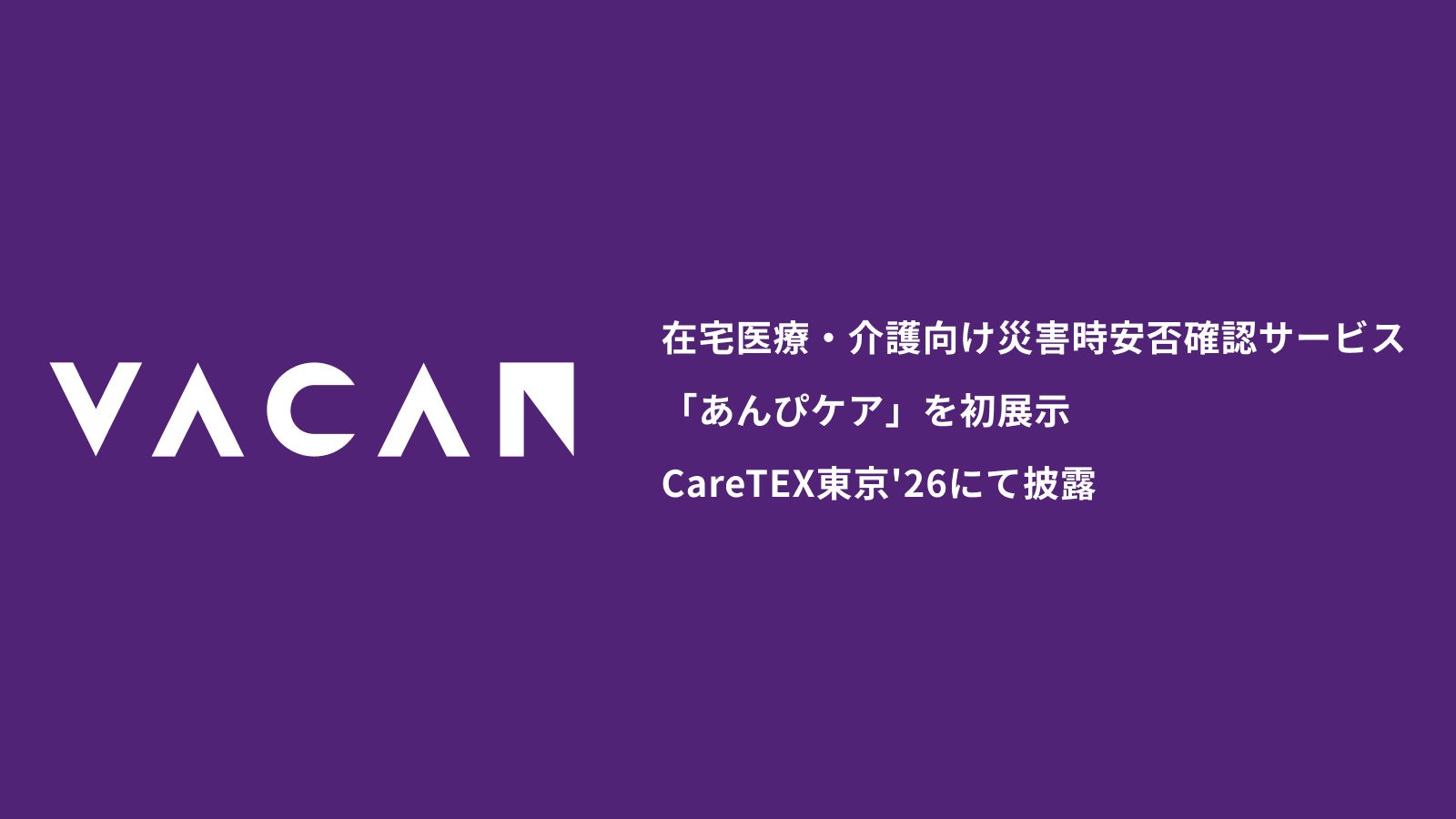 AI技術で混雑を可視化し、「人と空間を、テクノロジーで優しくつなぐ。」をミッションに、施設・エリアを支えるプラットフォームを活用したサービスを提供する株式会社バカン(本社:東京都中央区、代表取締役:河野剛進、以下「バカン」)は、2026年2月25日(水)〜27日(金)に東京ビッグサイトで開催される「東京ケアウィーク'26 内 第12回 CareTEX東京'26」において、西展示棟1ホール(ブース位置:8-27)に在宅医療・介護分野に特化した災害時安否確認サービス「あんぴケア」を初めて展示します。