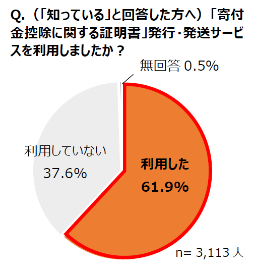~「寄付金控除に関する証明書発行・発送サービス」認知者のうち約6割が利用~