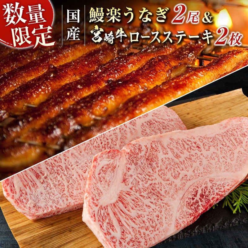 【楽天ふるさと納税】鰻楽 国産うなぎ2尾&宮崎牛ロースステーキ2枚500g