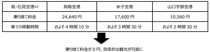 ~期間限定・台数限定 地域限定レンタカークーポン~ 萩・石見空港片道利用で、レンタカーの乗り捨て料金が0円になるキャンペーンを実施 東京(羽田)=萩・石見線を活用したさらなる観光誘客の促進