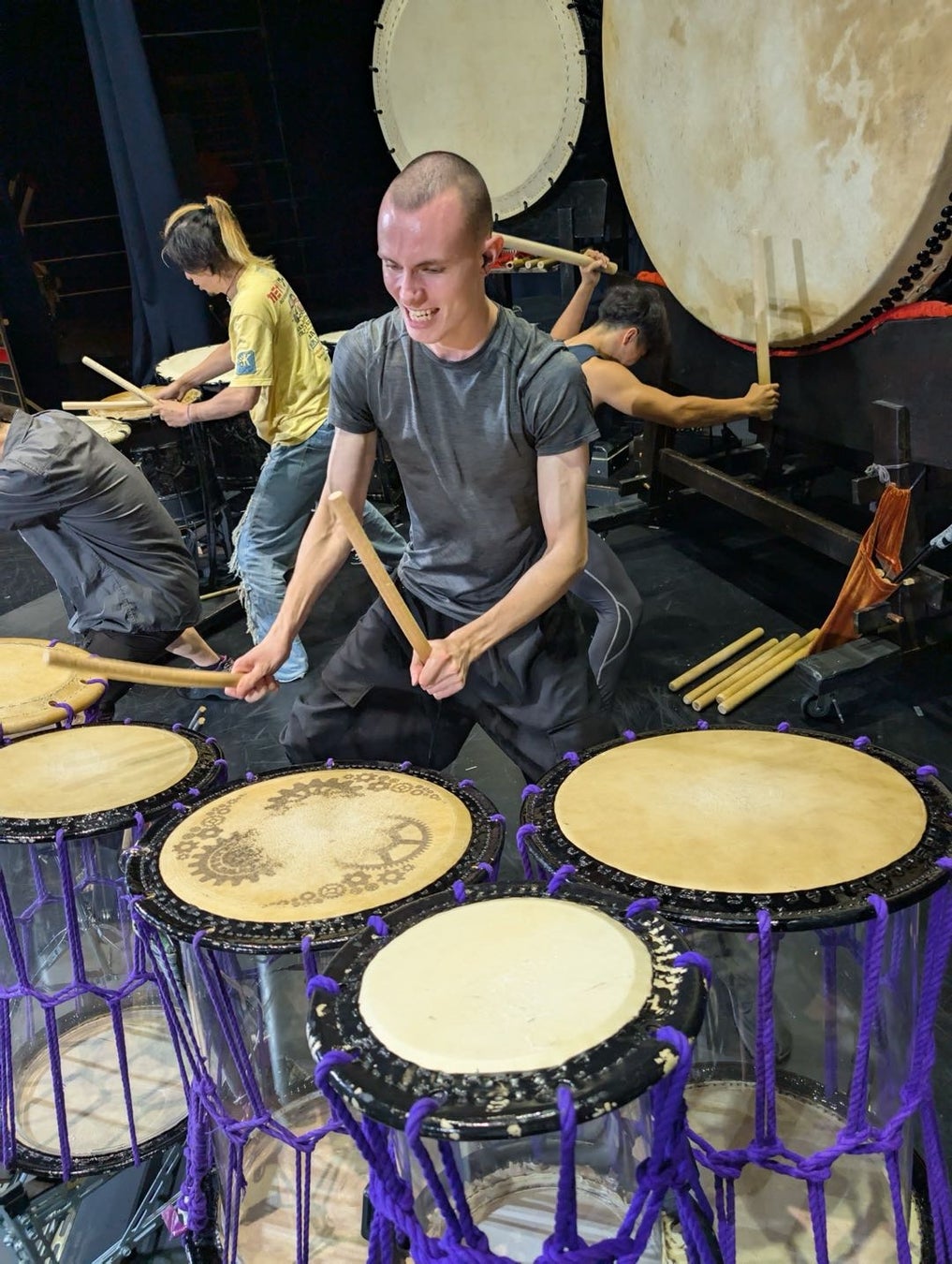 フィネガン君はニュージーランド出身で、以前ご家族と日本を旅行中に当劇場でのショーを観覧し感動。自ら留学費用を貯めて、日本で和太鼓を学ぶという夢を実現しました。